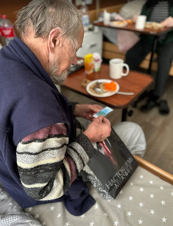 В комнатах, где живут наши подопечные‑мужчины во время госпитализации, особая «мужская» атмосфера. Там всегда есть своё настроение: азарт во время шахматного боя, колода карт на тумбочке, байки о рыбалке, анекдоты вполголоса. И именно такие простые вещи дают ощущение жизни.